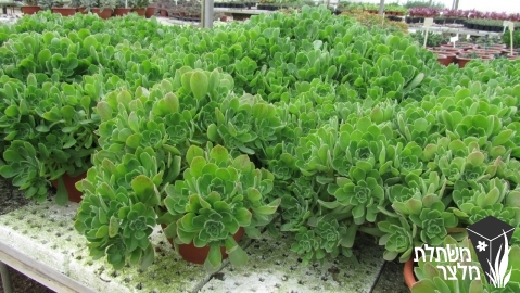| עלווה: | שושנת עלים רחבה בירוק בהיר המקבלת גוון ורדרד בשוליים בשמש מלאה |
